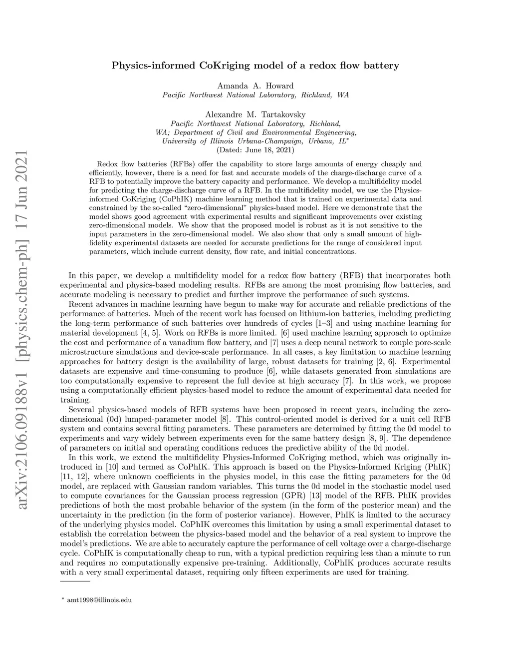Physics-informed CoKriging model of a redox flow battery