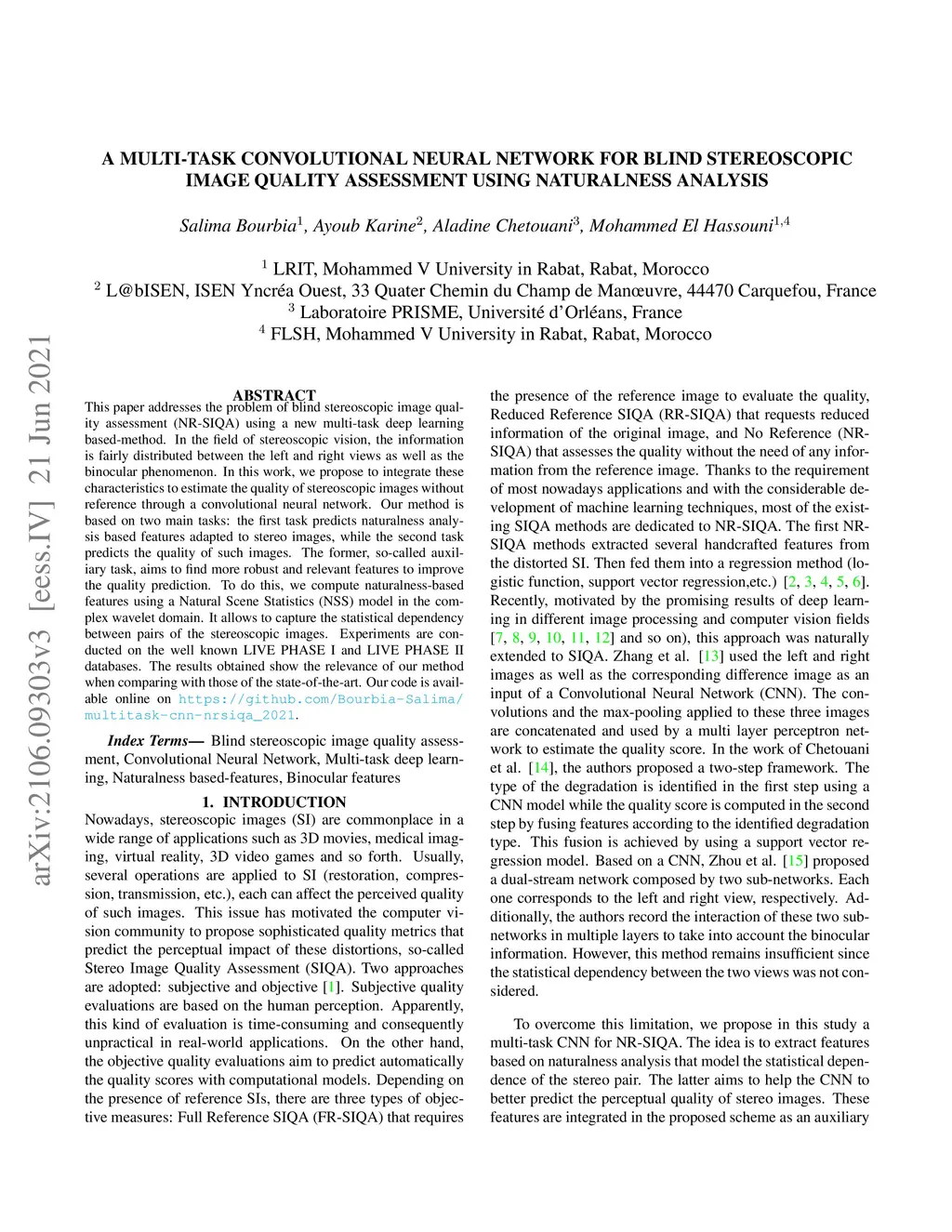 A Multi-task convolutional neural network for blind stereoscopic image