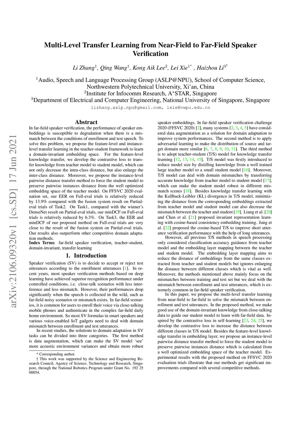 Multi-Level Transfer Learning from Near-Field to Far-Field Speaker