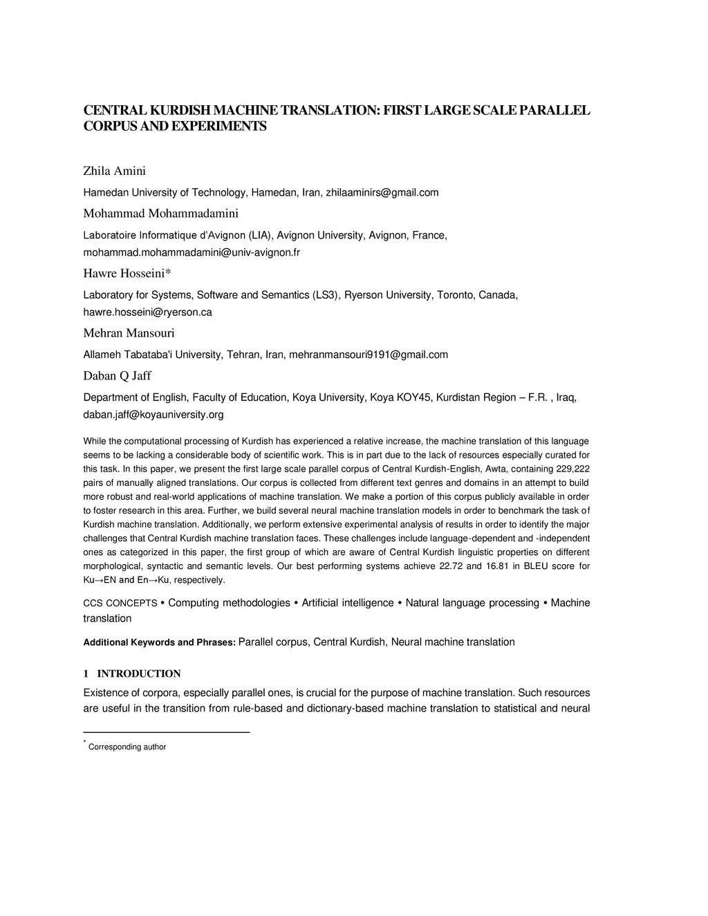 While the computational processing of Kurdish has experienced a relative increase, the machine translation of this language seems to be lacking a considerable body of scientific work. This is in part due to the lack of resources especially curated for this task. In this paper, we present the first large scale parallel corpus of Central Kurdish-English, Awta, containing 229,222 pairs of manually aligned translations. Our corpus is collected from different text genres and domains in an attempt to build more robust and real-world applications of machine translation. We make a portion of this corpus publicly available in order to foster research in this area. Further, we build several neural machine translation models in order to benchmark the task of Kurdish machine translation. Additionally, we perform extensive experimental analysis of results in order to identify the major challenges that Central Kurdish machine translation faces. These challenges include language-dependent and-independent ones as categorized in this paper, the first group of which are aware of Central Kurdish linguistic properties on different morphological, syntactic and semantic levels. Our best performing systems achieve 22.72 and 16.81 in BLEU score for KuEN and EnKu, respectively.