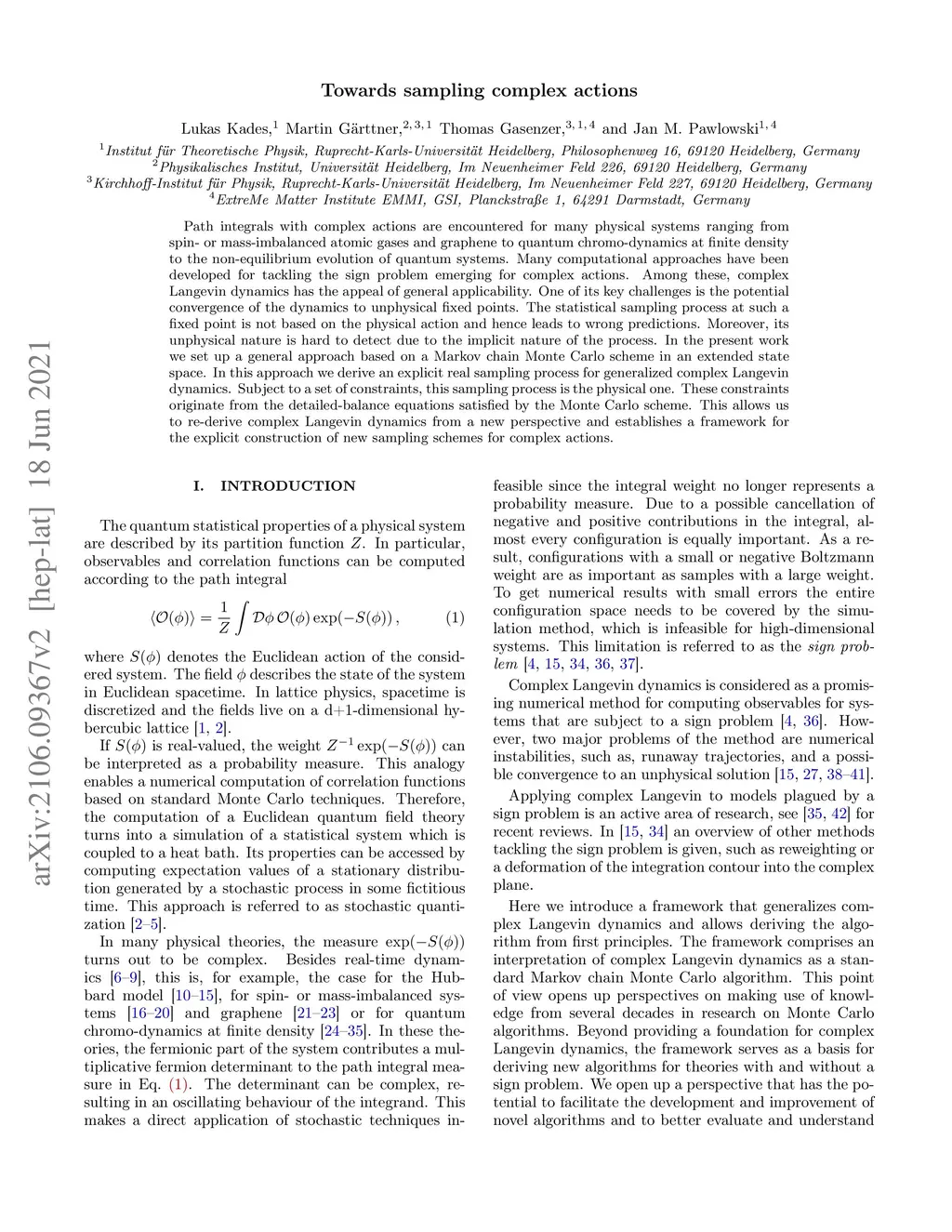 Path integrals with complex actions are encountered for many physical systems ranging from spin- or mass-imbalanced atomic gases and graphene to quantum chromo-dynamics at finite density to the non-equilibrium evolution of quantum systems. Many computational approaches have been developed for tackling the sign problem emerging for complex actions. Among these, complex Langevin dynamics has the appeal of general applicability. One of its key challenges is the potential convergence of the dynamics to unphysical fixed points. The statistical sampling process at such a fixed point is not based on the physical action and hence leads to wrong predictions. Moreover, its unphysical nature is hard to detect due to the implicit nature of the process. In the present work we set up a general approach based on a Markov chain Monte Carlo scheme in an extended state space. In this approach we derive an explicit real sampling process for generalized complex Langevin dynamics. Subject to a set of constraints, this sampling process is the physical one. These constraints originate from the detailed-balance equations satisfied by the Monte Carlo scheme. This allows us to re-derive complex Langevin dynamics from a new perspective and establishes a framework for the explicit construction of new sampling schemes for complex actions.