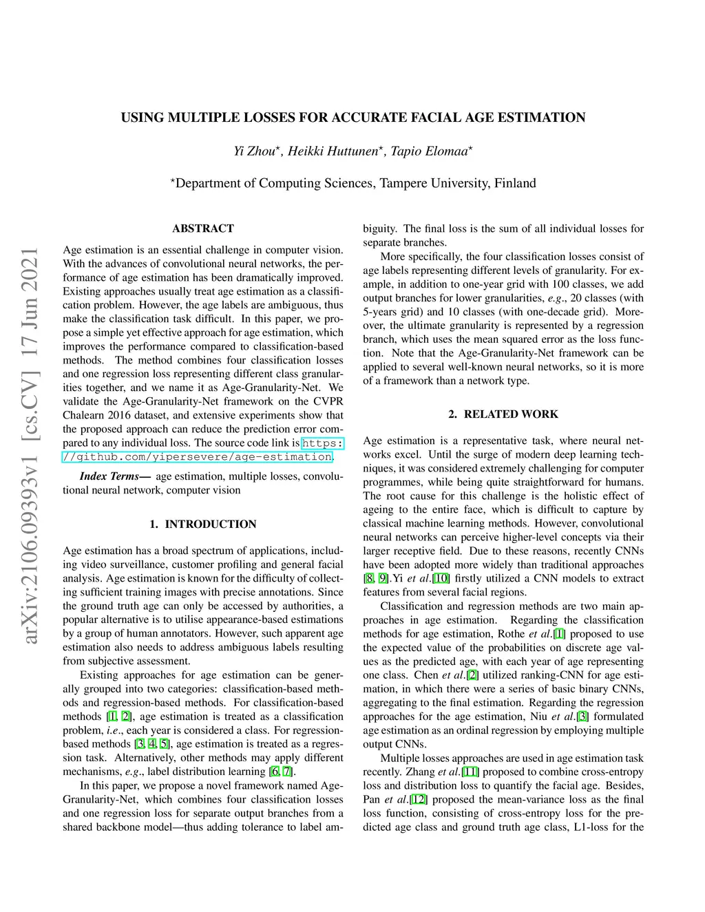 using multiple losses for accurate facial age estimation