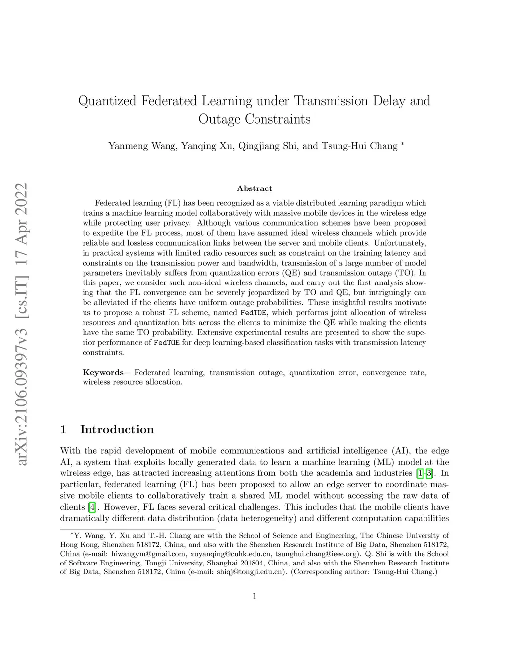 Federated learning (FL) has been recognized as a viable distributed learning paradigm which trains a machine learning model collaboratively with massive mobile devices in the wireless edge while protecting user privacy. Although various communication schemes have been proposed to expedite the FL process, most of them have assumed ideal wireless channels which provide reliable and lossless communication links between the server and mobile clients. Unfortunately, in practical systems with limited radio resources such as constraint on the training latency and constraints on the transmission power and bandwidth, transmission of a large number of model parameters inevitably suffers from quantization errors (QE) and transmission outage (TO). In this paper, we consider such non-ideal wireless channels, and carry out the first analysis showing that the FL convergence can be severely jeopardized by TO and QE, but intriguingly can be alleviated if the clients have uniform outage probabilities. These insightful results motivate us to propose a robust FL scheme, named FedTOE, which performs joint allocation of wireless resources and quantization bits across the clients to minimize the QE while making the clients have the same TO probability. Extensive experimental results are presented to show the superior performance of FedTOE for deep learning-based classification tasks with transmission latency constraints.