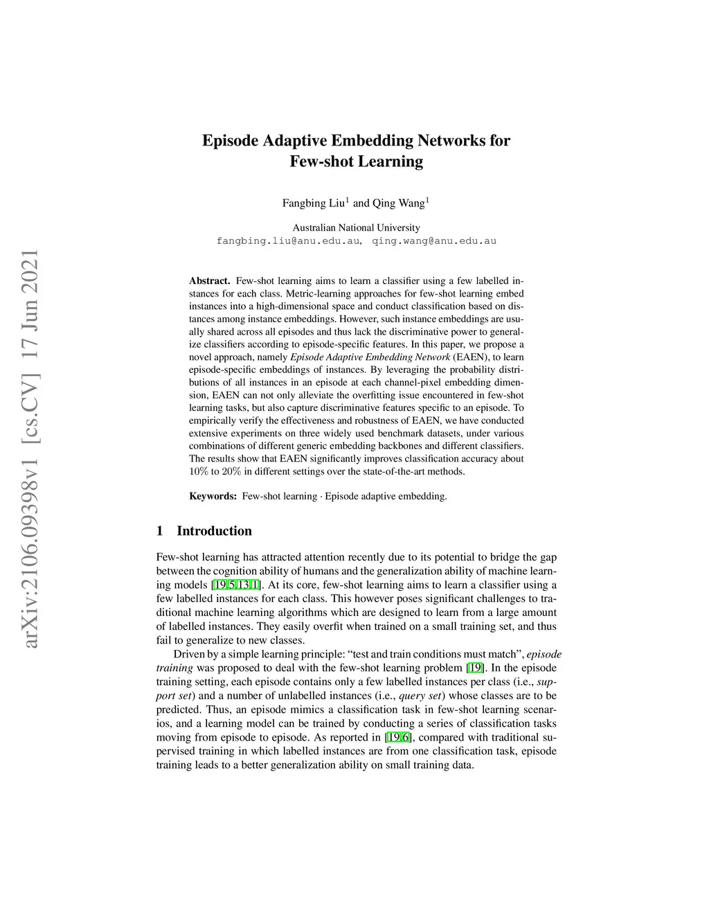 Episode Adaptive Embedding Networks for Few-shot Learning