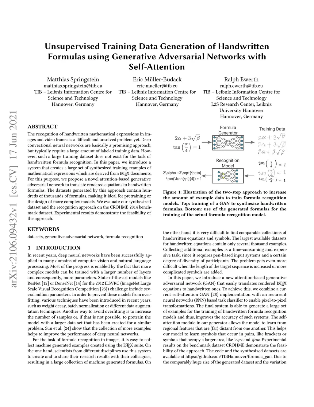 Unsupervised Training Data Generation of Handwritten Formulas using