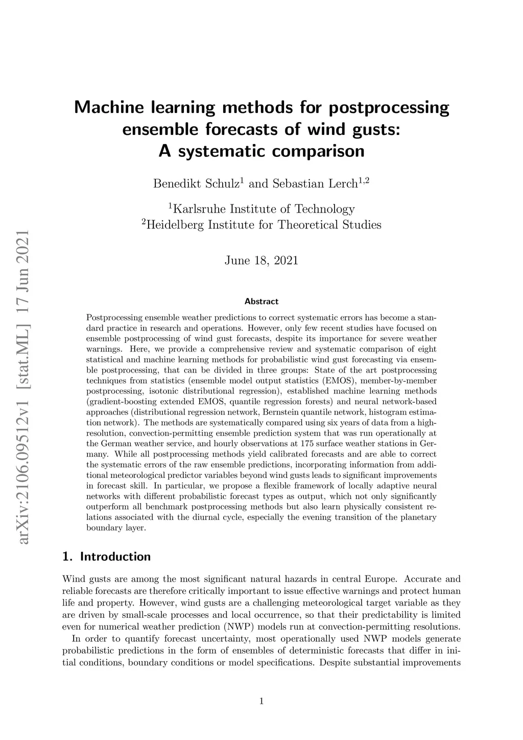 Machine learning methods for postprocessing ensemble forecasts of wind