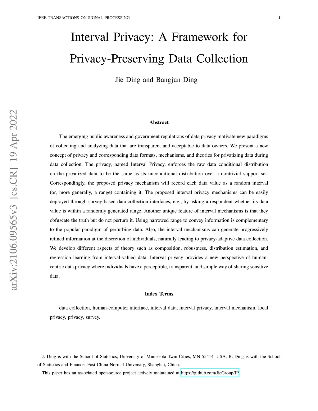 Interval Privacy: A Framework for Privacy-Preserving Data Collection