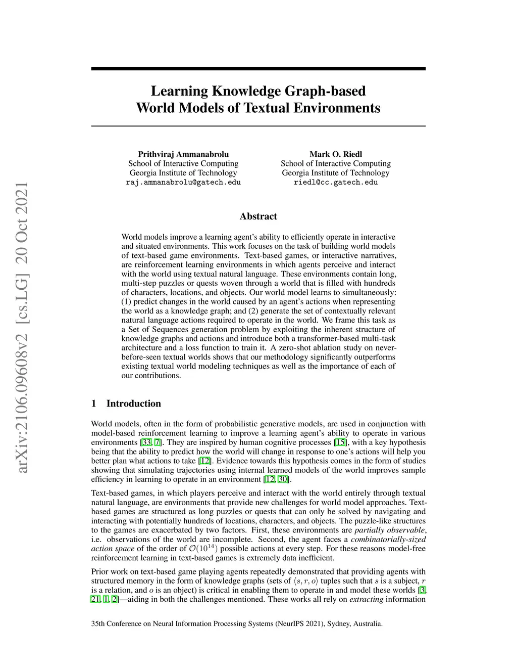 Learning Knowledge Graph-based World Models of Textual Environments