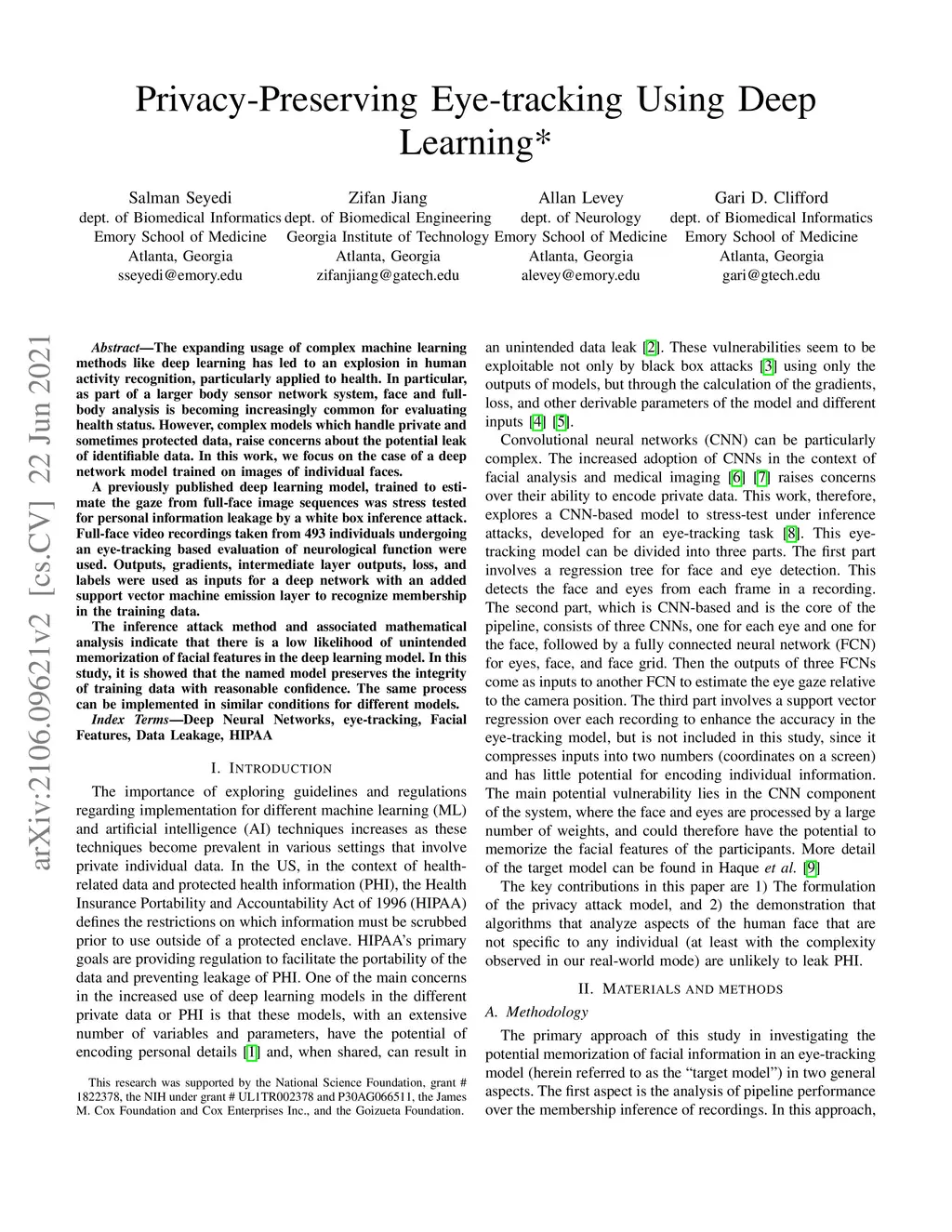 Privacy-Preserving Eye-tracking Using Deep Learning