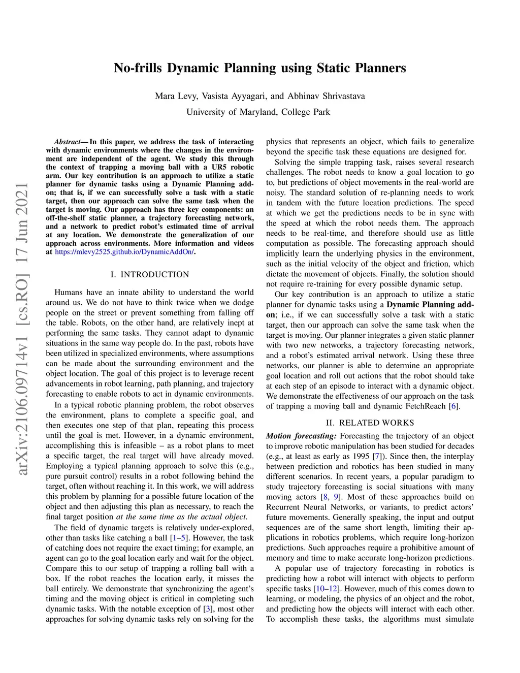 In this paper, we address the task of interacting with dynamic environments where the changes in the environment are independent of the agent. We study this through the context of trapping a moving ball with a UR5 robotic arm. Our key contribution is an approach to utilize a static planner for dynamic tasks using a Dynamic Planning add-on; that is, if we can successfully solve a task with a static target, then our approach can solve the same task when the target is moving. Our approach has three key components: an off-the-shelf static planner, a trajectory forecasting network, and a network to predict robot's estimated time of arrival at any location. We demonstrate the generalization of our approach across environments. More information and videos at https://mlevy2525.github.io/DynamicAddOn.
