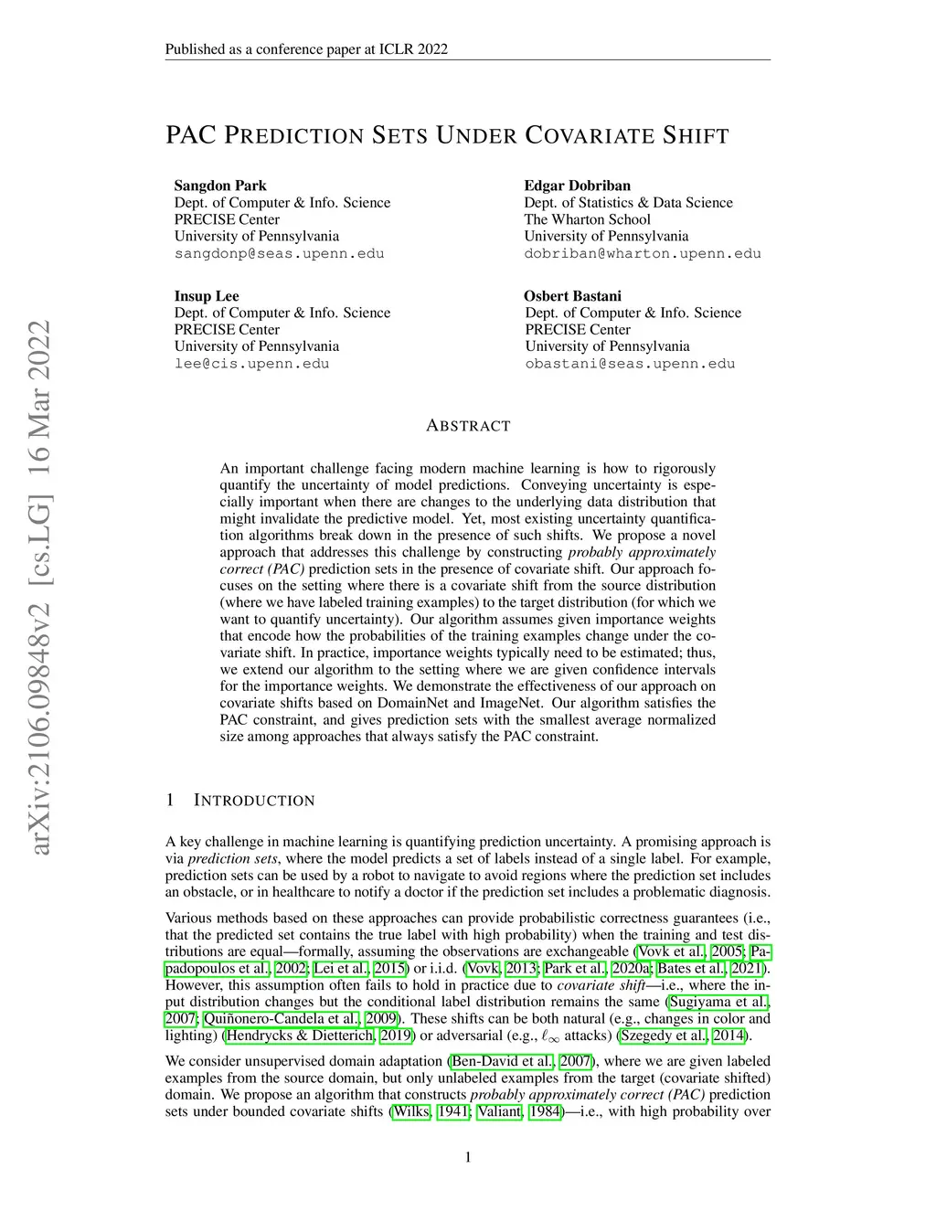 PAC Prediction Sets Under Covariate Shift