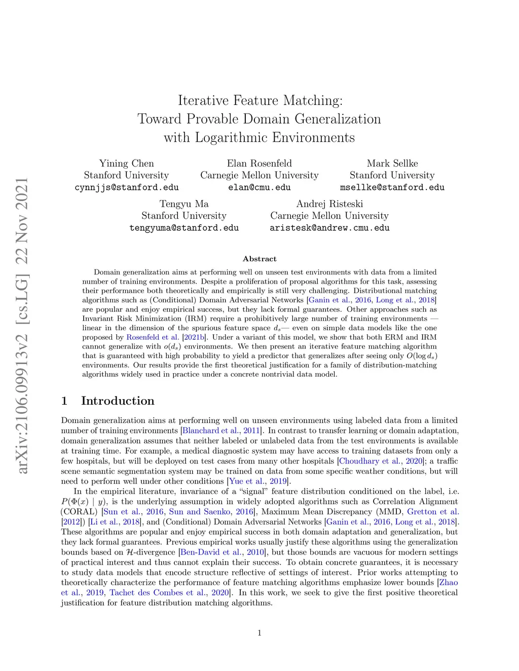 Iterative Feature Matching: Toward Provable Domain Generalization with