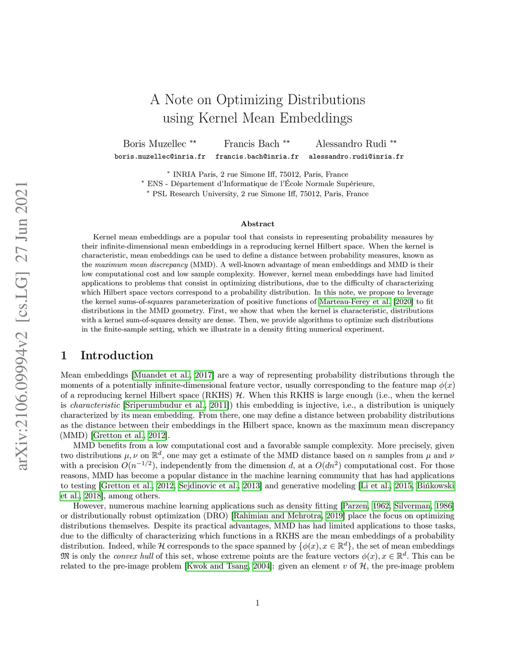 A Note on Optimizing Distributions using Kernel Mean Embeddings