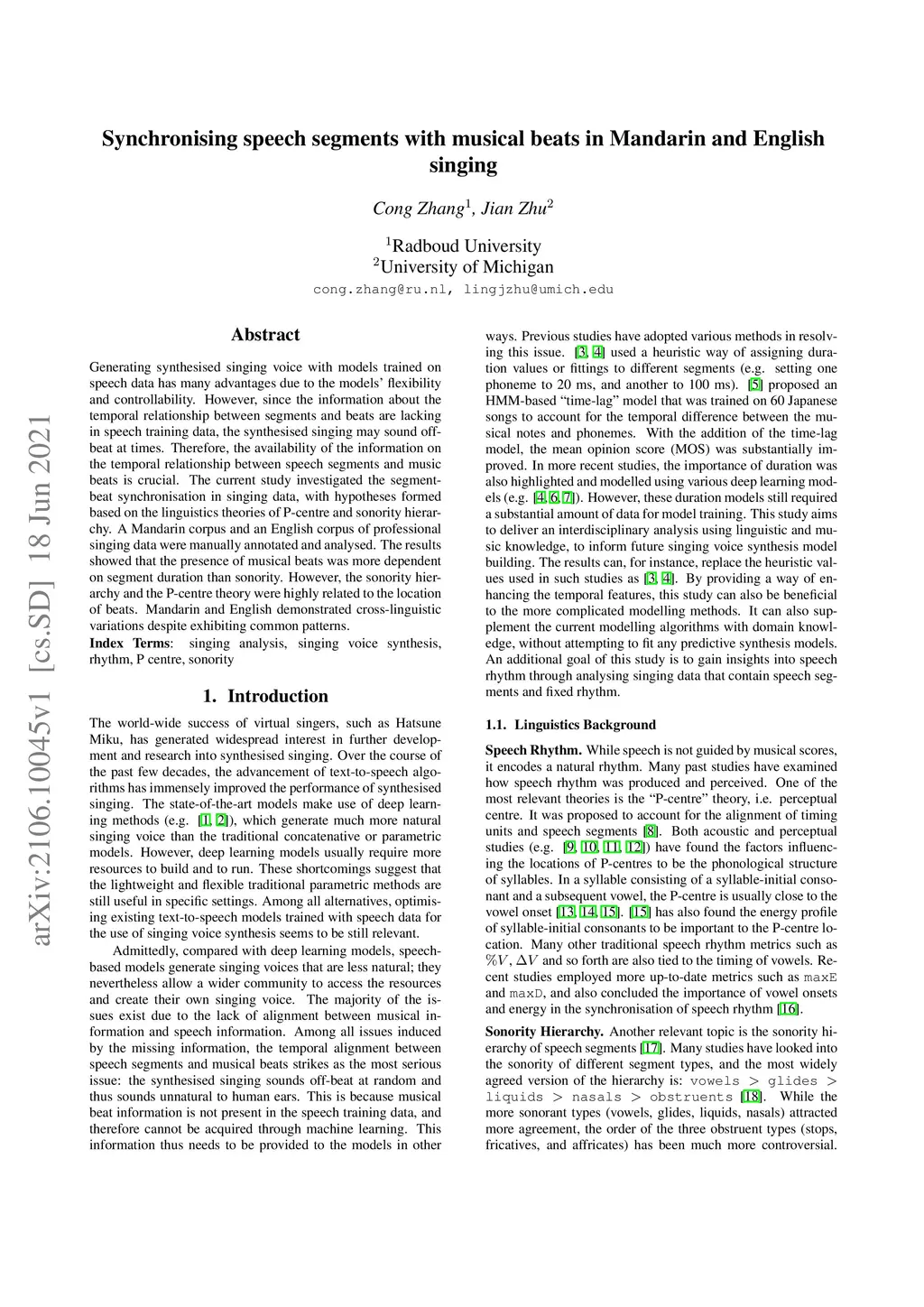 Synchronising speech segments with musical beats in Mandarin and English