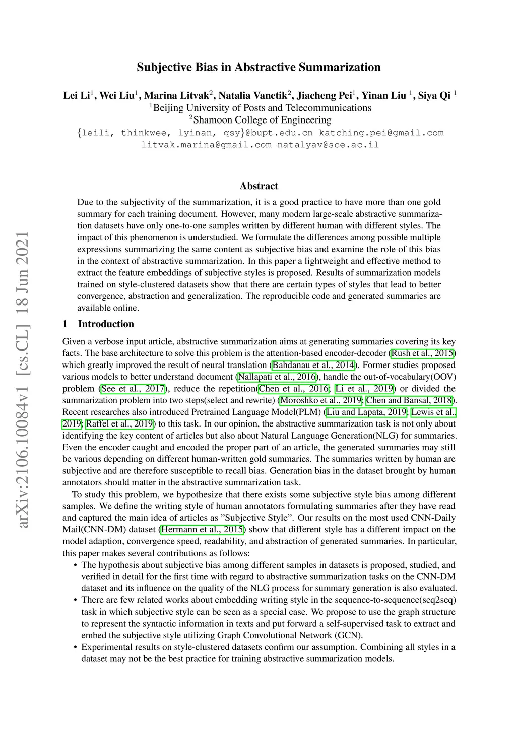 Subjective Bias in Abstractive Summarization