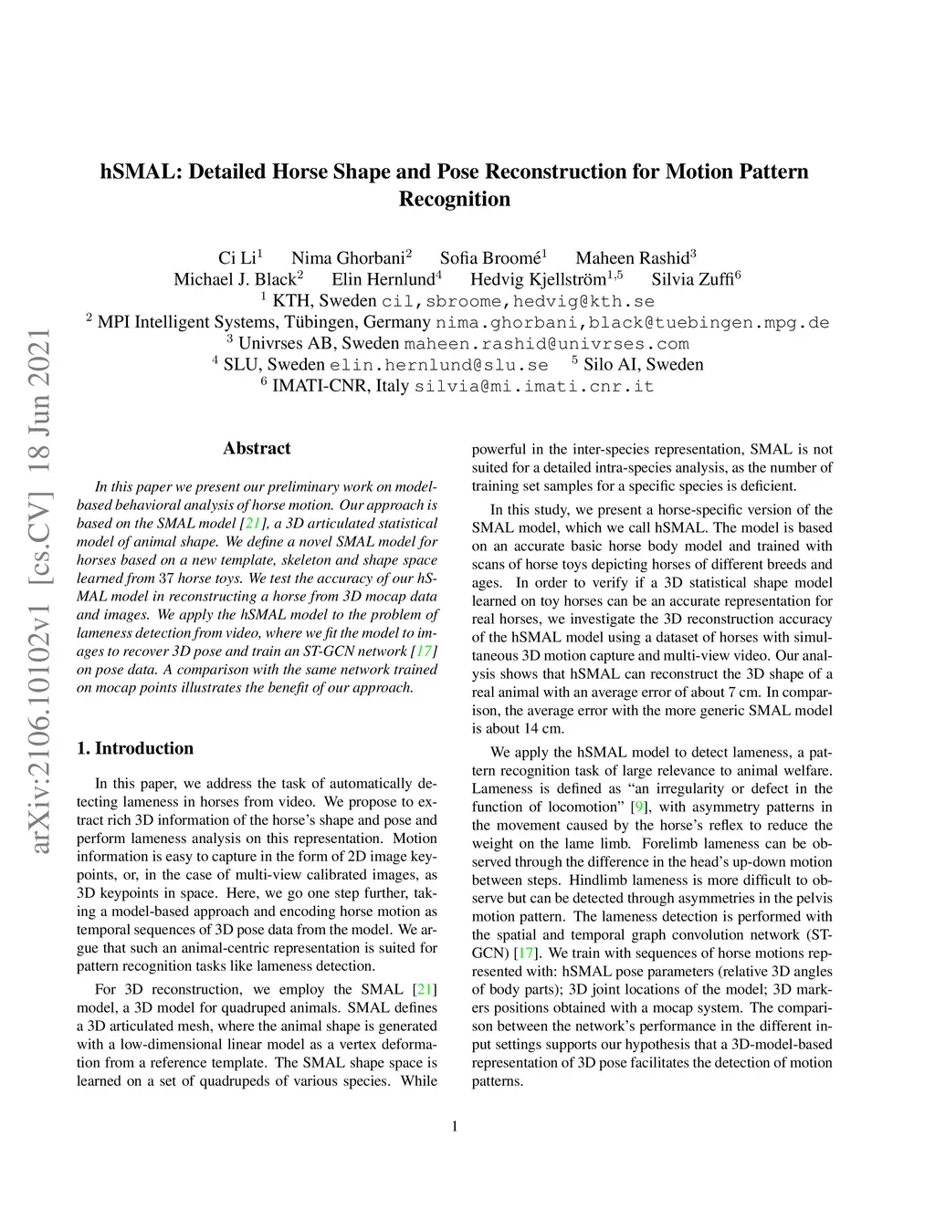 hSMAL: Detailed Horse Shape and Pose Reconstruction for Motion Pattern