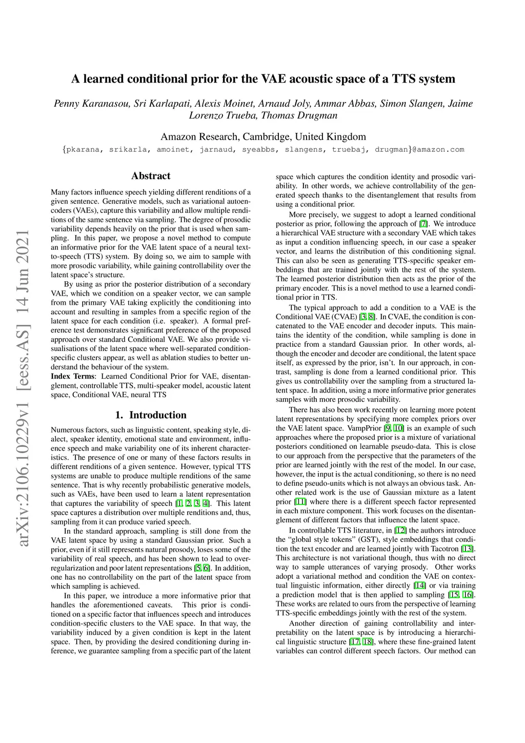 A learned conditional prior for the VAE acoustic space of a TTS system