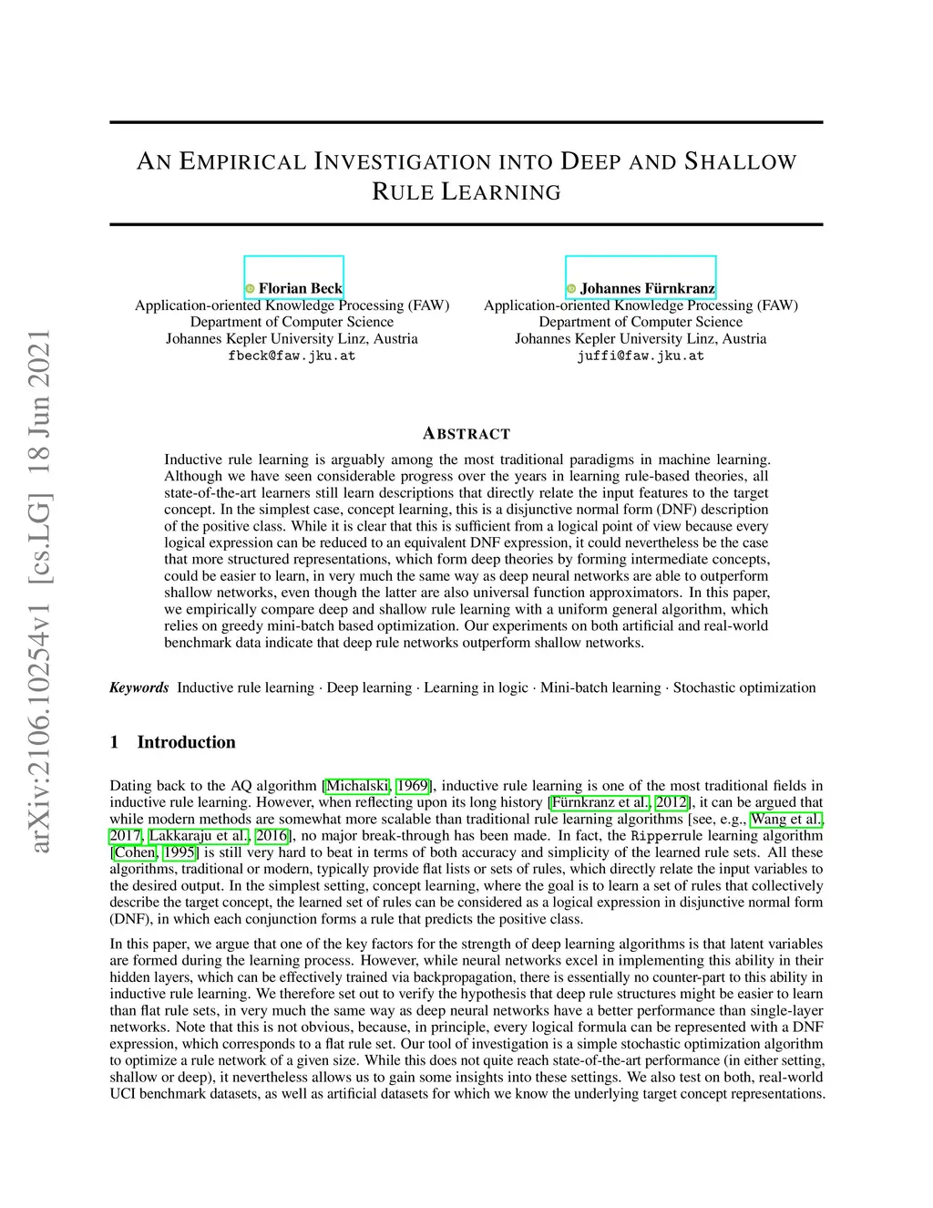 Inductive rule learning is arguably among the most traditional paradigms in machine learning. Although we have seen considerable progress over the years in learning rule-based theories, all state-of-the-art learners still learn descriptions that directly relate the input features to the target concept. In the simplest case, concept learning, this is a disjunctive normal form (DNF) description of the positive class. While it is clear that this is sufficient from a logical point of view because every logical expression can be reduced to an equivalent DNF expression, it could nevertheless be the case that more structured representations, which form deep theories by forming intermediate concepts, could be easier to learn, in very much the same way as deep neural networks are able to outperform shallow networks, even though the latter are also universal function approximators. In this paper, we empirically compare deep and shallow rule learning with a uniform general algorithm, which relies on greedy mini-batch based optimization. Our experiments on both artificial and real-world benchmark data indicate that deep rule networks outperform shallow networks.