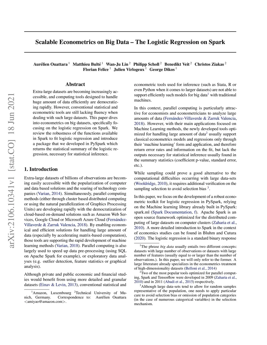 Scalable Econometrics on Big Data -- The Logistic Regression on Spark