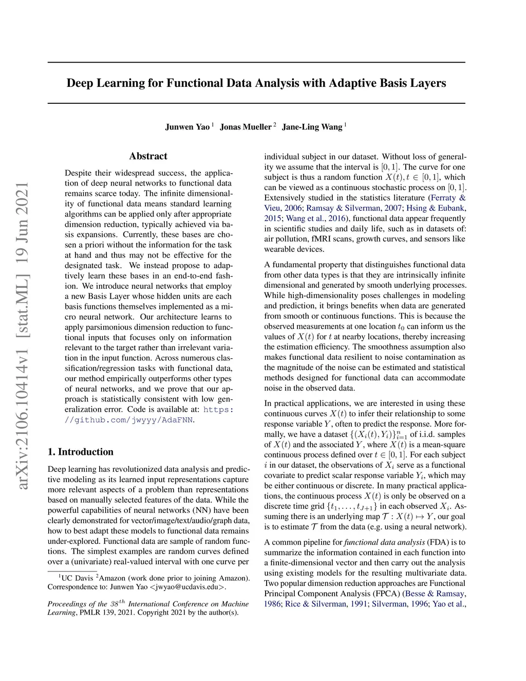 Despite their widespread success, the application of deep neural networks to functional data remains scarce today. The infinite dimensionality of functional data means standard learning algorithms can be applied only after appropriate dimension reduction, typically achieved via basis expansions. Currently, these bases are chosen a priori without the information for the task at hand and thus may not be effective for the designated task. We instead propose to adaptively learn these bases in an end-to-end fashion. We introduce neural networks that employ a new Basis Layer whose hidden units are each basis functions themselves implemented as a micro neural network. Our architecture learns to apply parsimonious dimension reduction to functional inputs that focuses only on information relevant to the target rather than irrelevant variation in the input function. Across numerous classification/regression tasks with functional data, our method empirically outperforms other types of neural networks, and we prove that our approach is statistically consistent with low generalization error. Code is available at: \url{https://github.com/jwyyy/AdaFNN}.