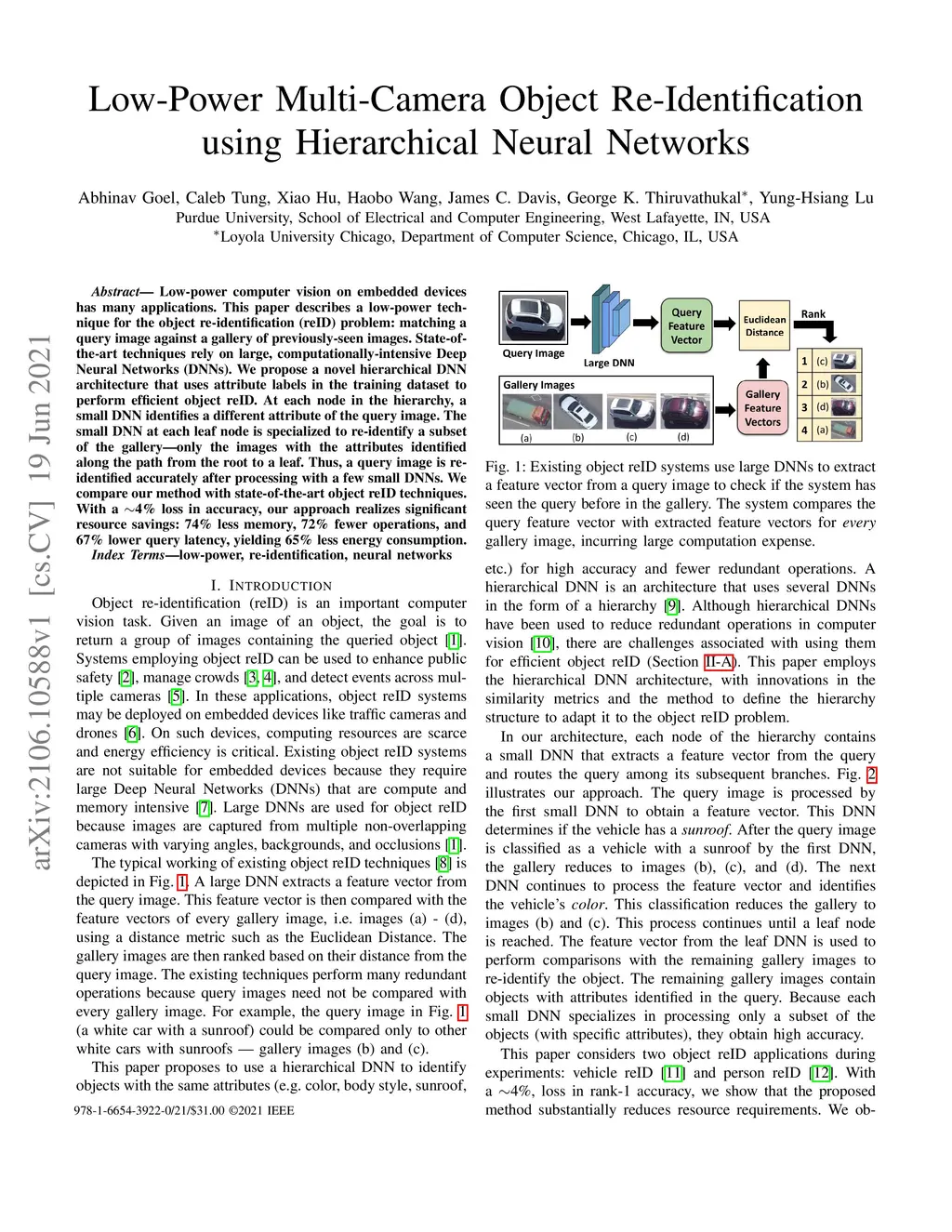 Low-Power Multi-Camera Object Re-Identification using Hierarchical