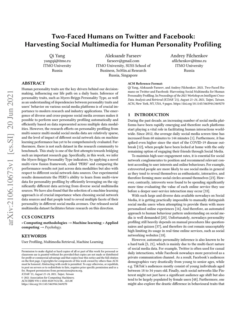 Two-Faced Humans on Twitter and Facebook: Harvesting Social Multimedia