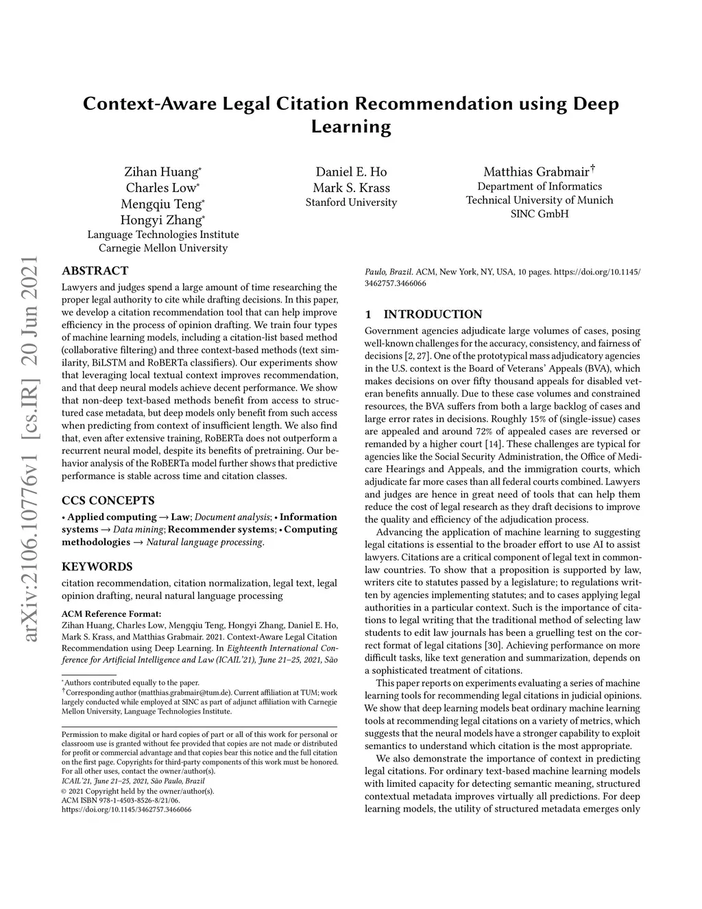 Context-Aware Legal Citation Recommendation using Deep Learning