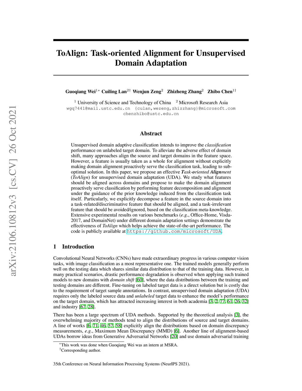 ToAlign: Task-oriented Alignment for Unsupervised Domain Adaptation