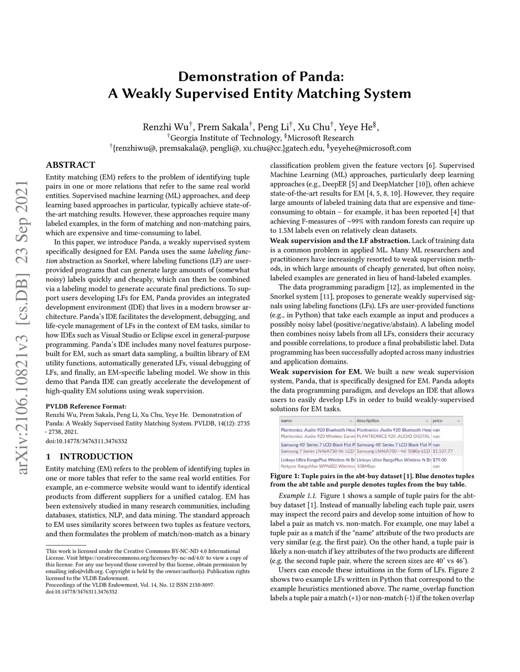Demonstration of Panda: A Weakly Supervised Entity Matching System