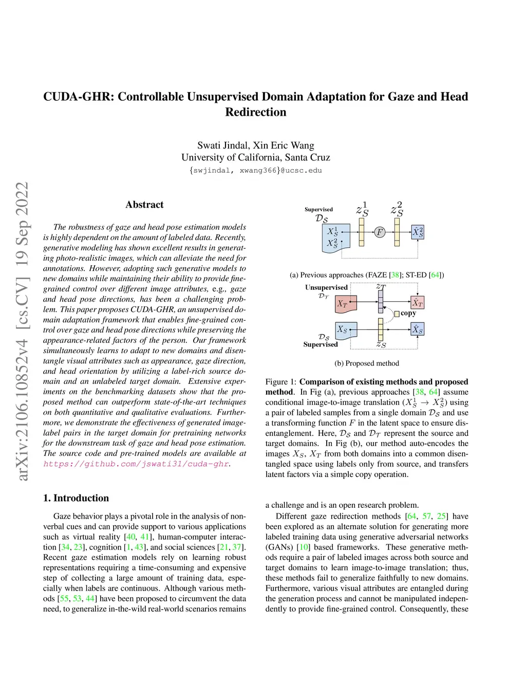 CUDA-GHR: Controllable Unsupervised Domain Adaptation for Gaze and Head