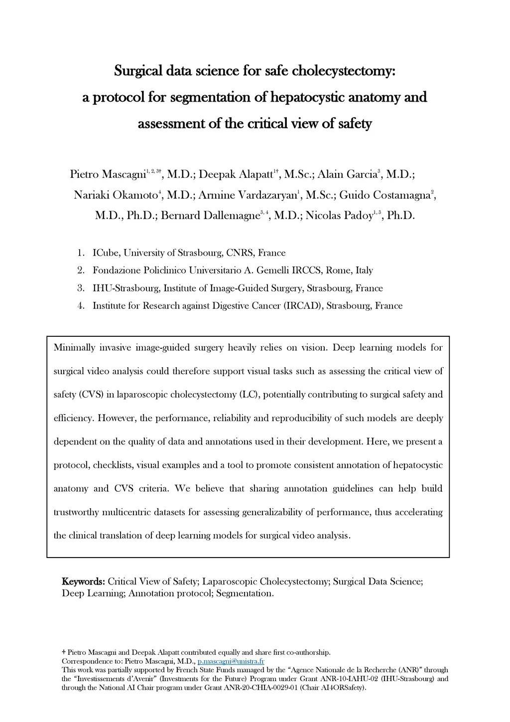 Surgical data science for safe cholecystectomy: a protocol for