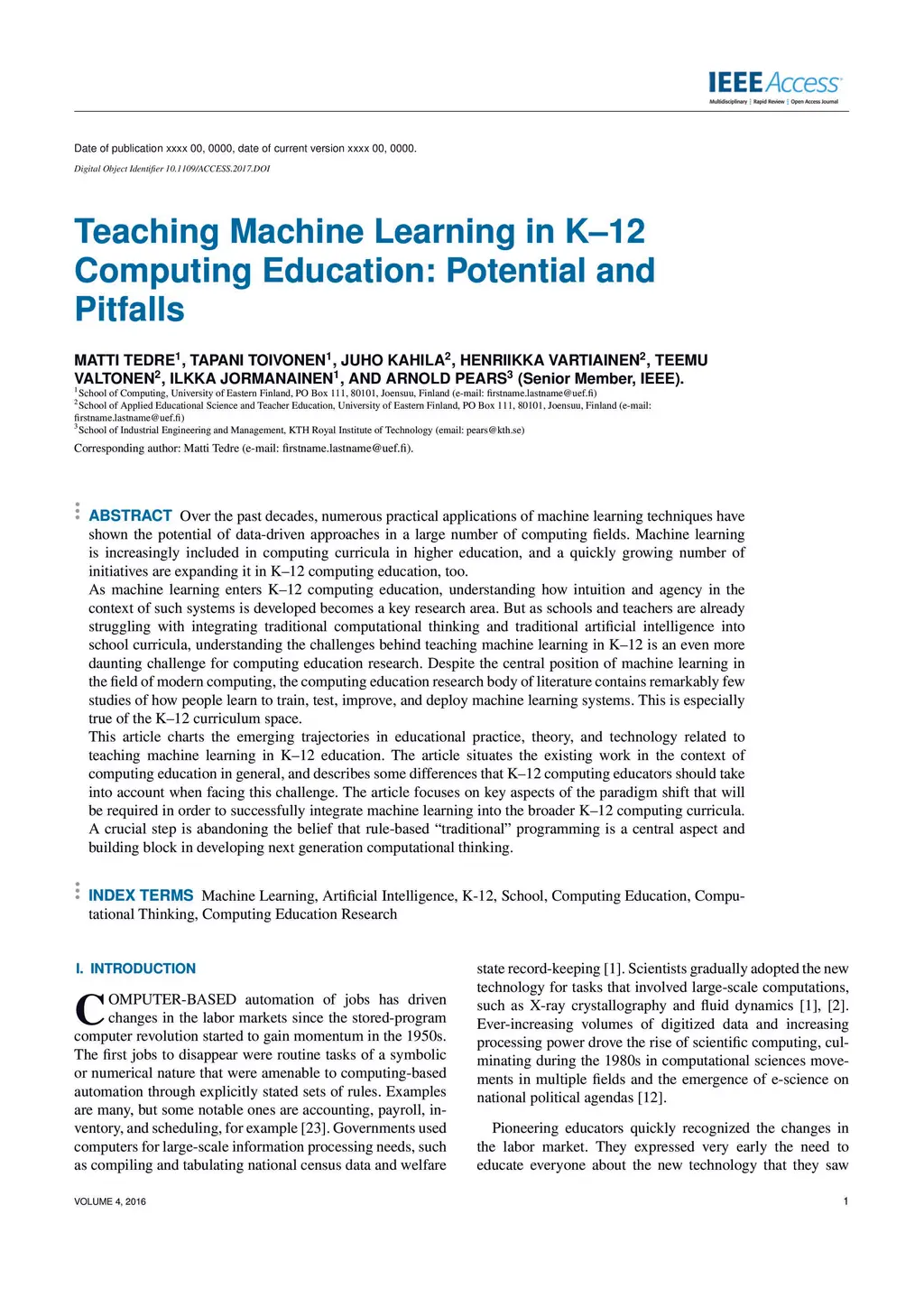 Teaching Machine Learning in K-12 Computing Education: Potential and
