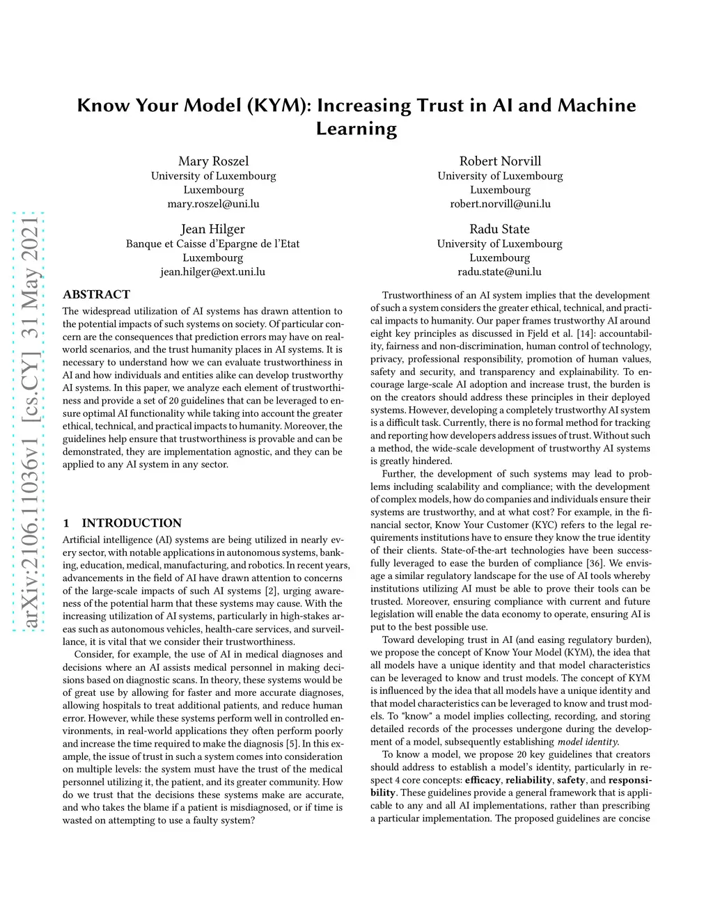 Know Your Model (KYM): Increasing Trust in AI and Machine Learning