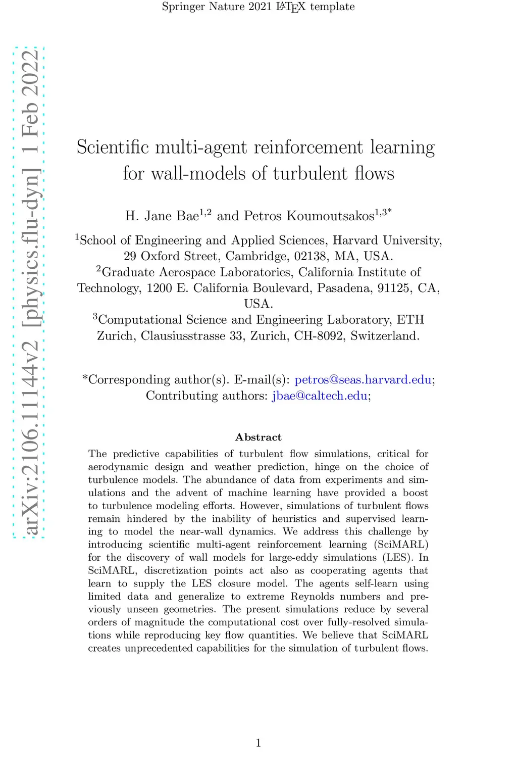 Scientific multi-agent reinforcement learning for wall-models of