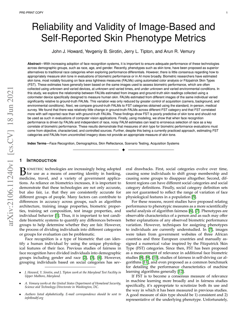 Reliability and Validity of Image-Based and Self-Reported Skin Phenotype