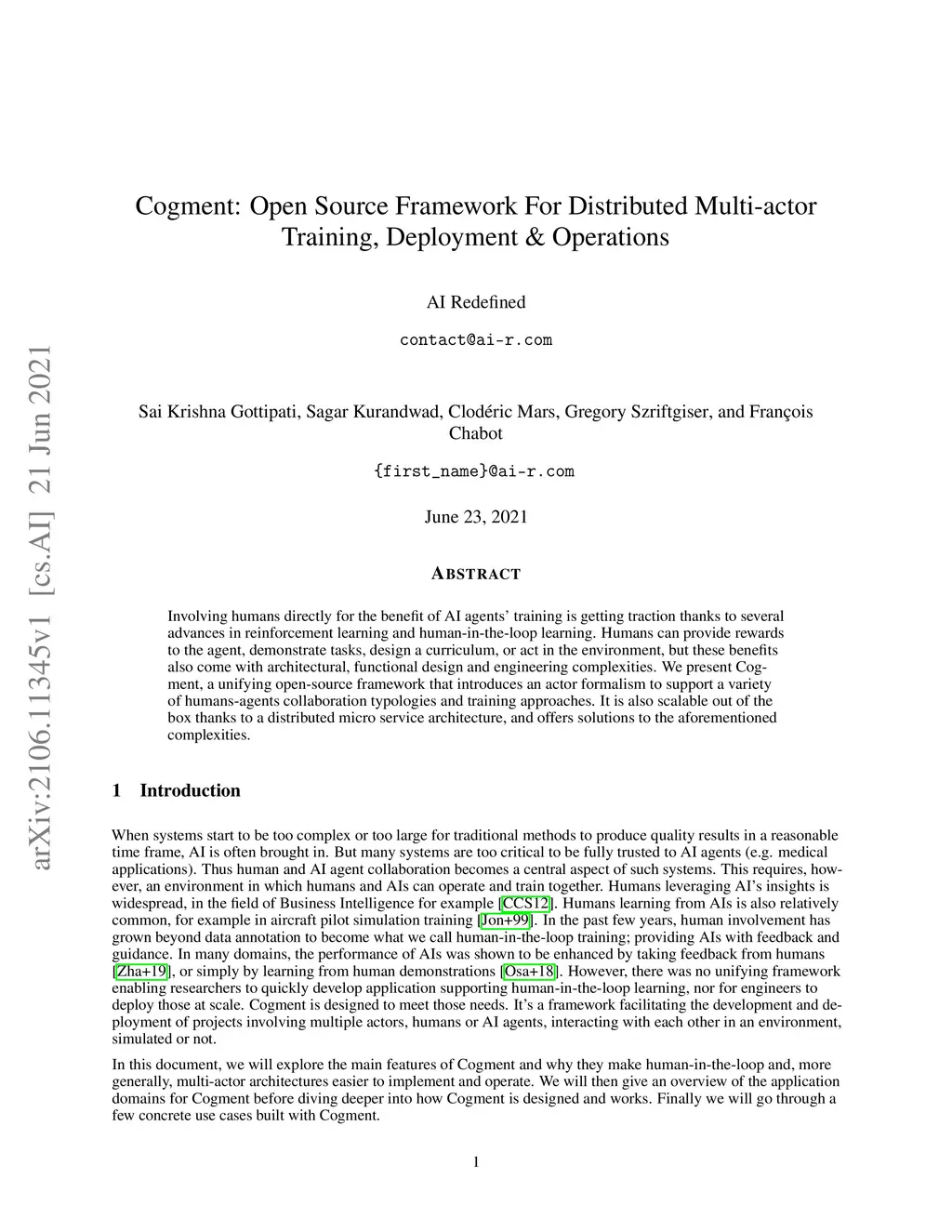 Cogment: Open Source Framework For Distributed Multi-actor Training,