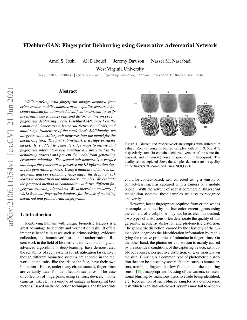FDeblur-GAN: Fingerprint Deblurring using Generative Adversarial Network