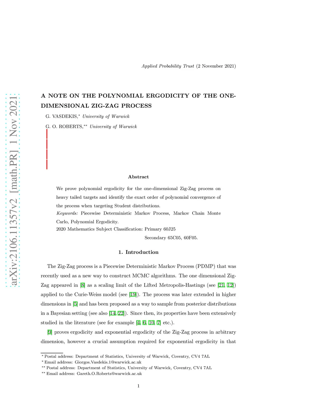 A Note on the Polynomial Ergodicity of the One-Dimensional Zig-Zag