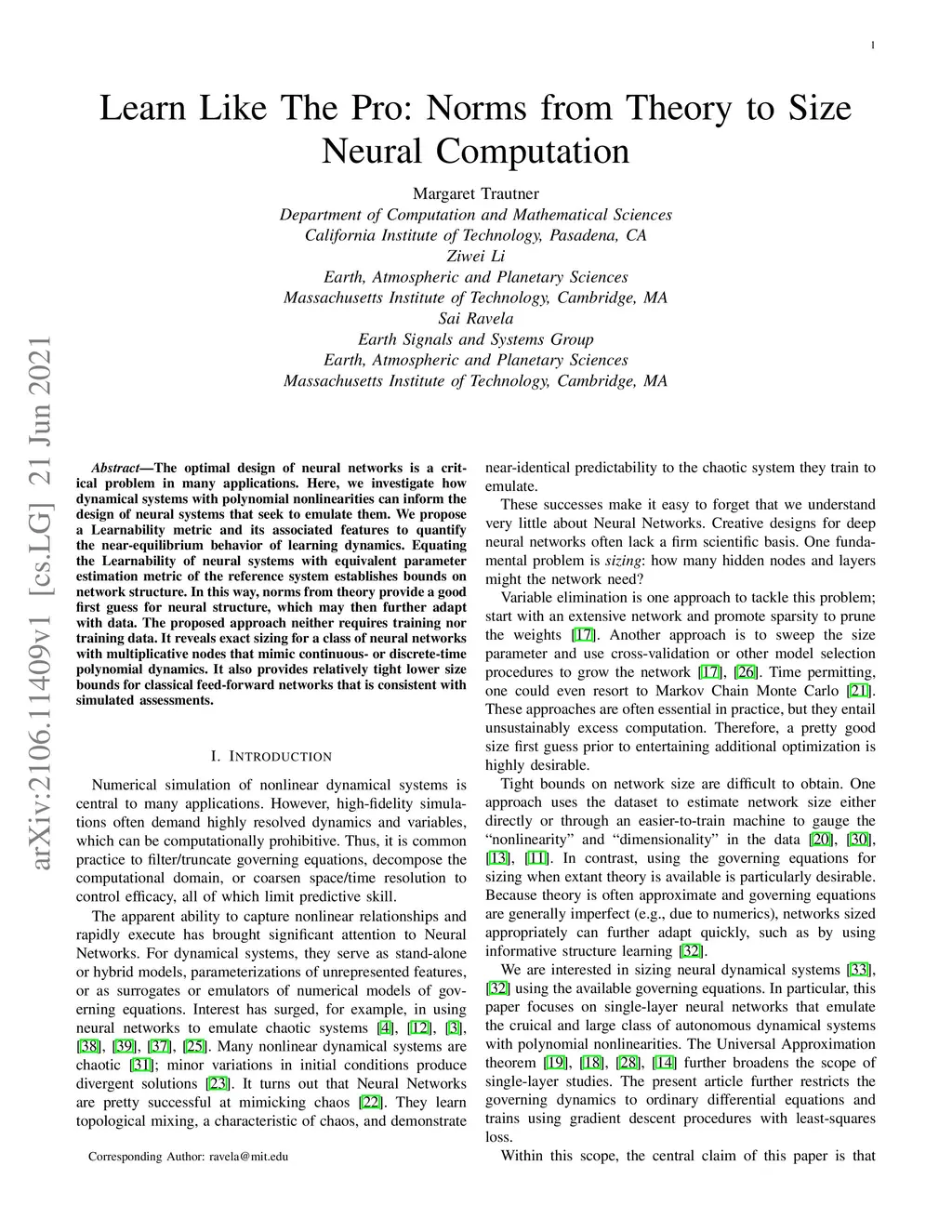 Learn Like The Pro: Norms from Theory to Size Neural Computation