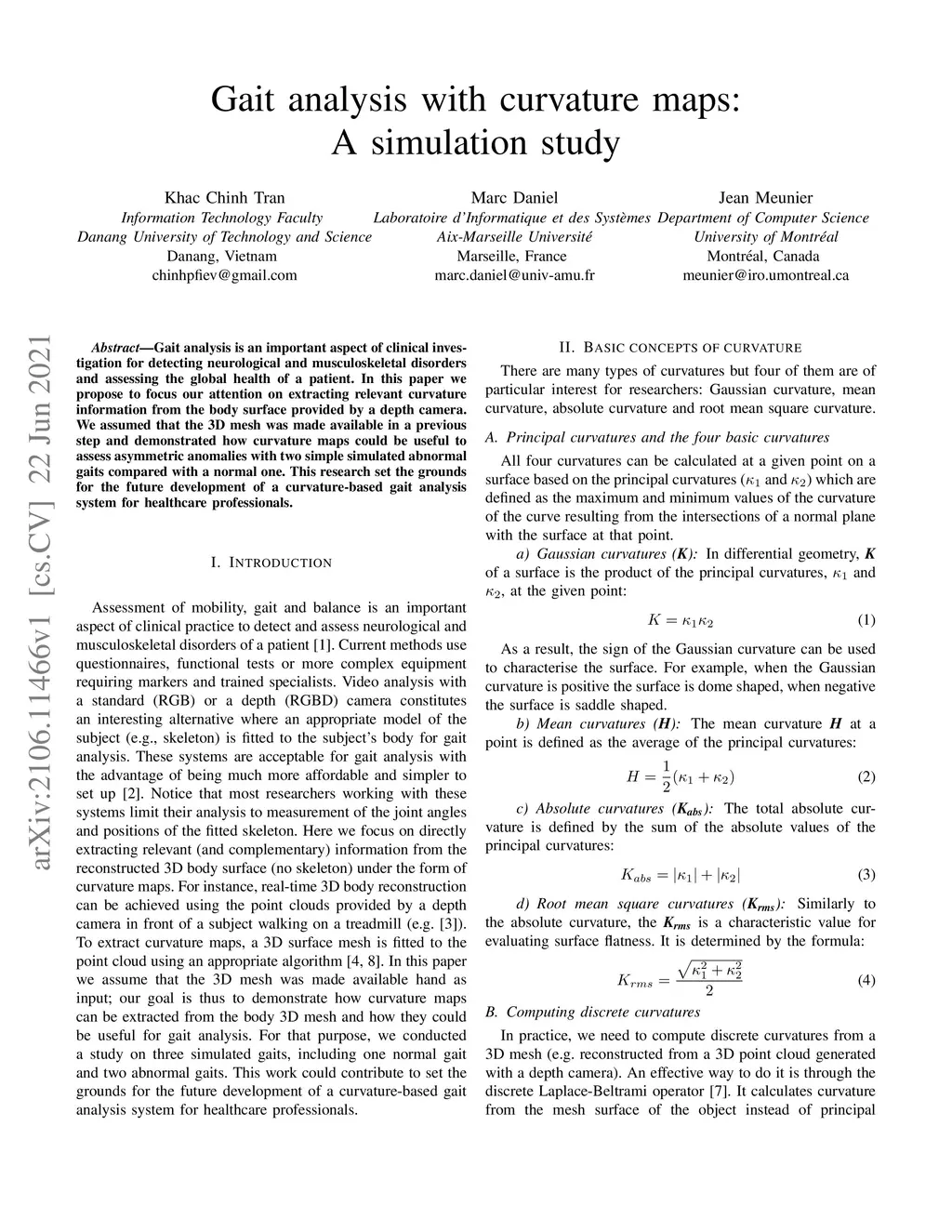 Gait analysis with curvature maps: A simulation study