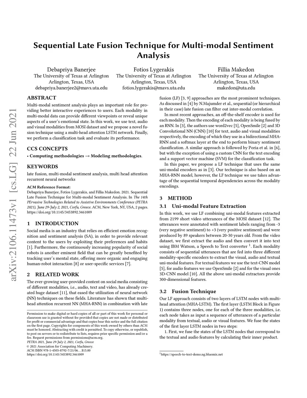 Sequential Late Fusion Technique for Multi-modal Sentiment Analysis
