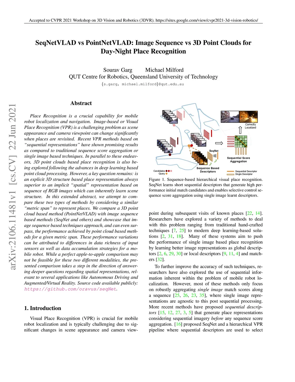 SeqNetVLAD vs PointNetVLAD: Image Sequence vs 3D Point Clouds for