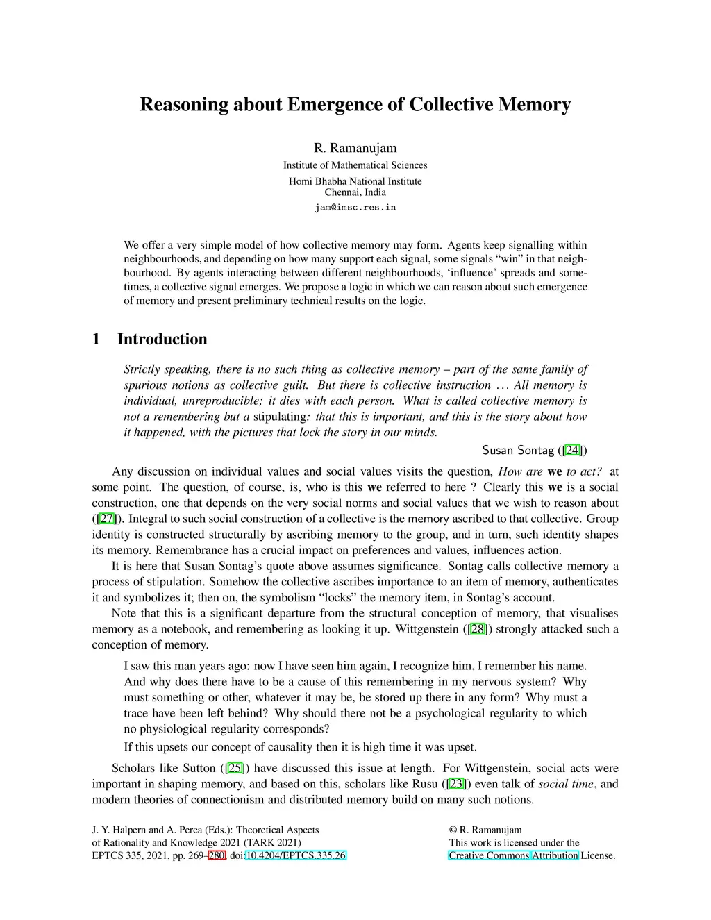 Reasoning about Emergence of Collective Memory