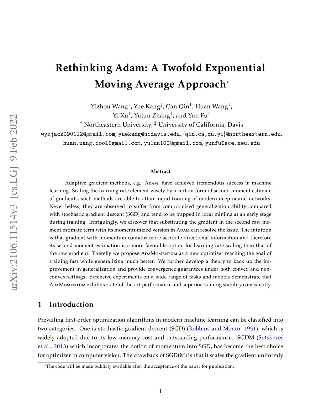 Rethinking Adam: A Twofold Exponential Moving Average Approach