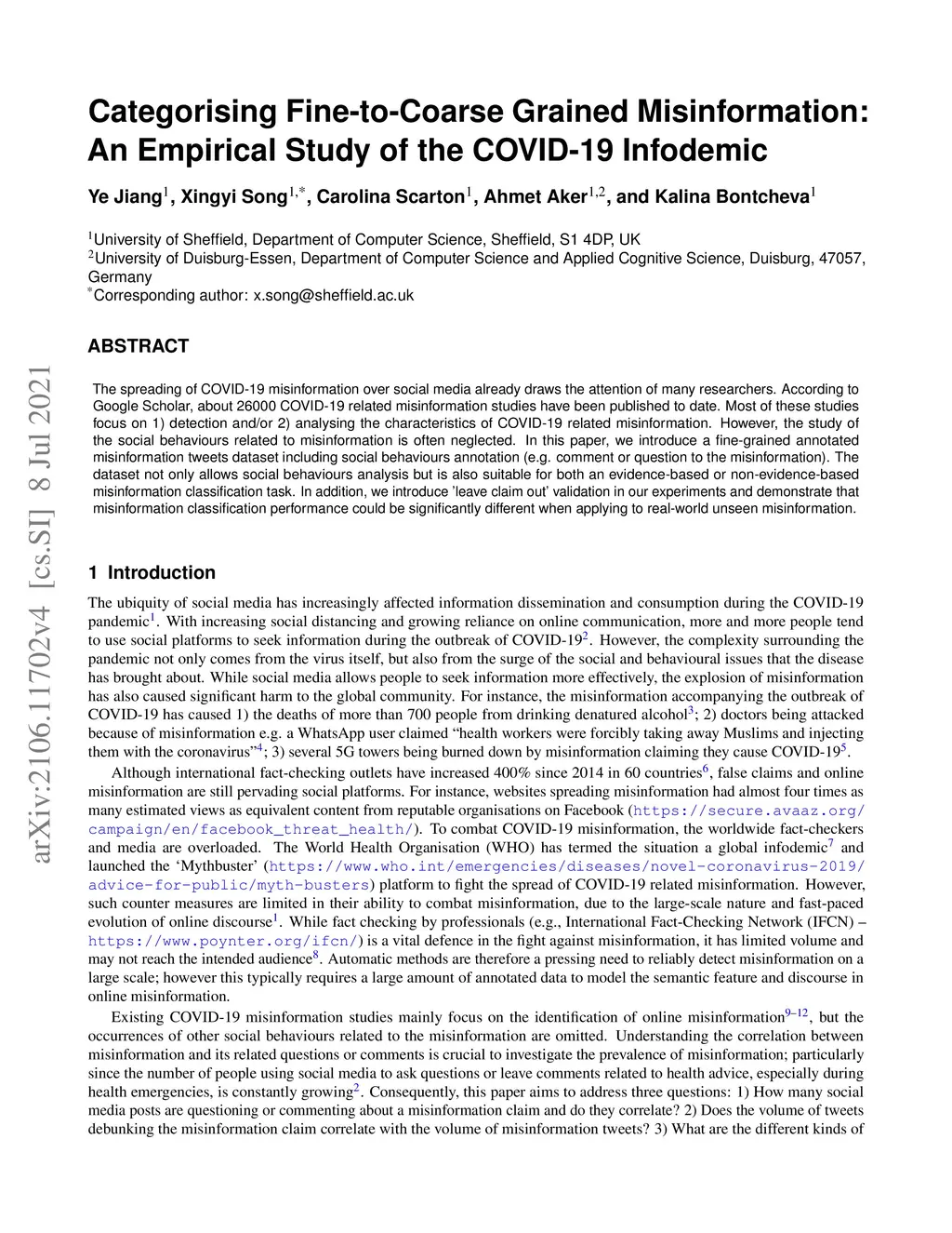 Categorising Fine-to-Coarse Grained Misinformation: An Empirical Study of COVID-19 Infodemic