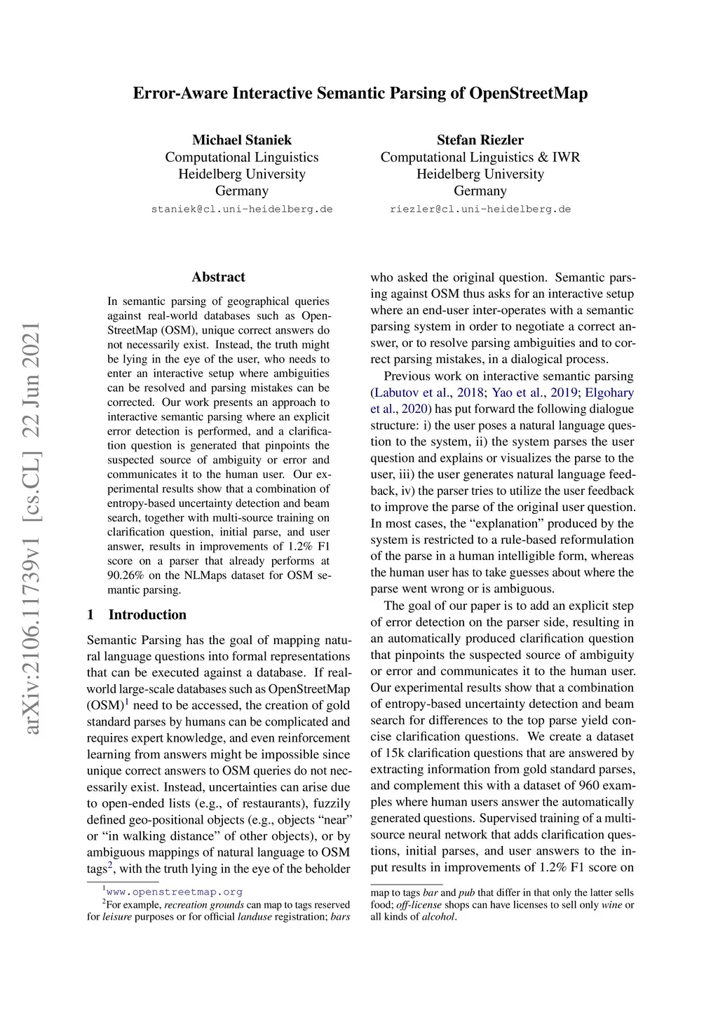 Error-Aware Interactive Semantic Parsing of OpenStreetMap