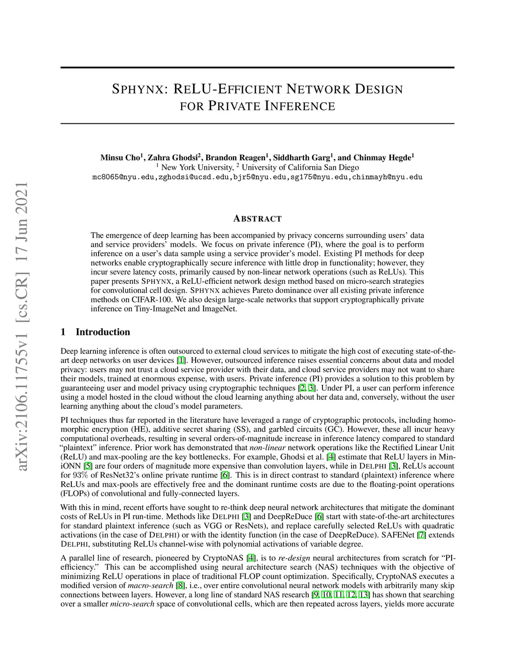 The emergence of deep learning has been accompanied by privacy concerns surrounding users' data and service providers' models. We focus on private inference (PI), where the goal is to perform inference on a user's data sample using a service provider's model. Existing PI methods for deep networks enable cryptographically secure inference with little drop in functionality; however, they incur severe latency costs, primarily caused by non-linear network operations (such as ReLUs). This paper presents Sphynx, a ReLU-efficient network design method based on micro-search strategies for convolutional cell design. Sphynx achieves Pareto dominance over all existing private inference methods on CIFAR-100. We also design large-scale networks that support cryptographically private inference on Tiny-ImageNet and ImageNet.