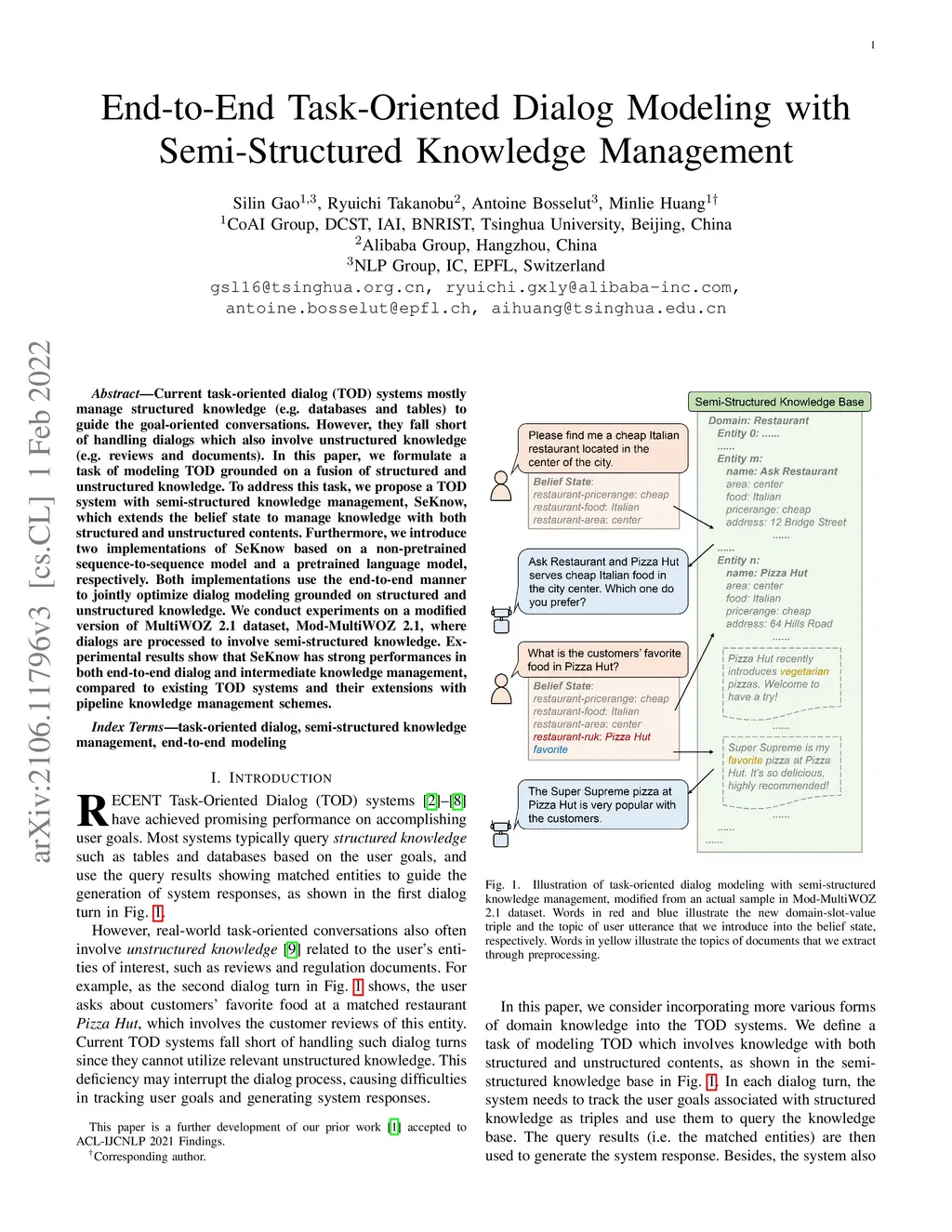 End-to-End Task-Oriented Dialog Modeling with Semi-Structured Knowledge