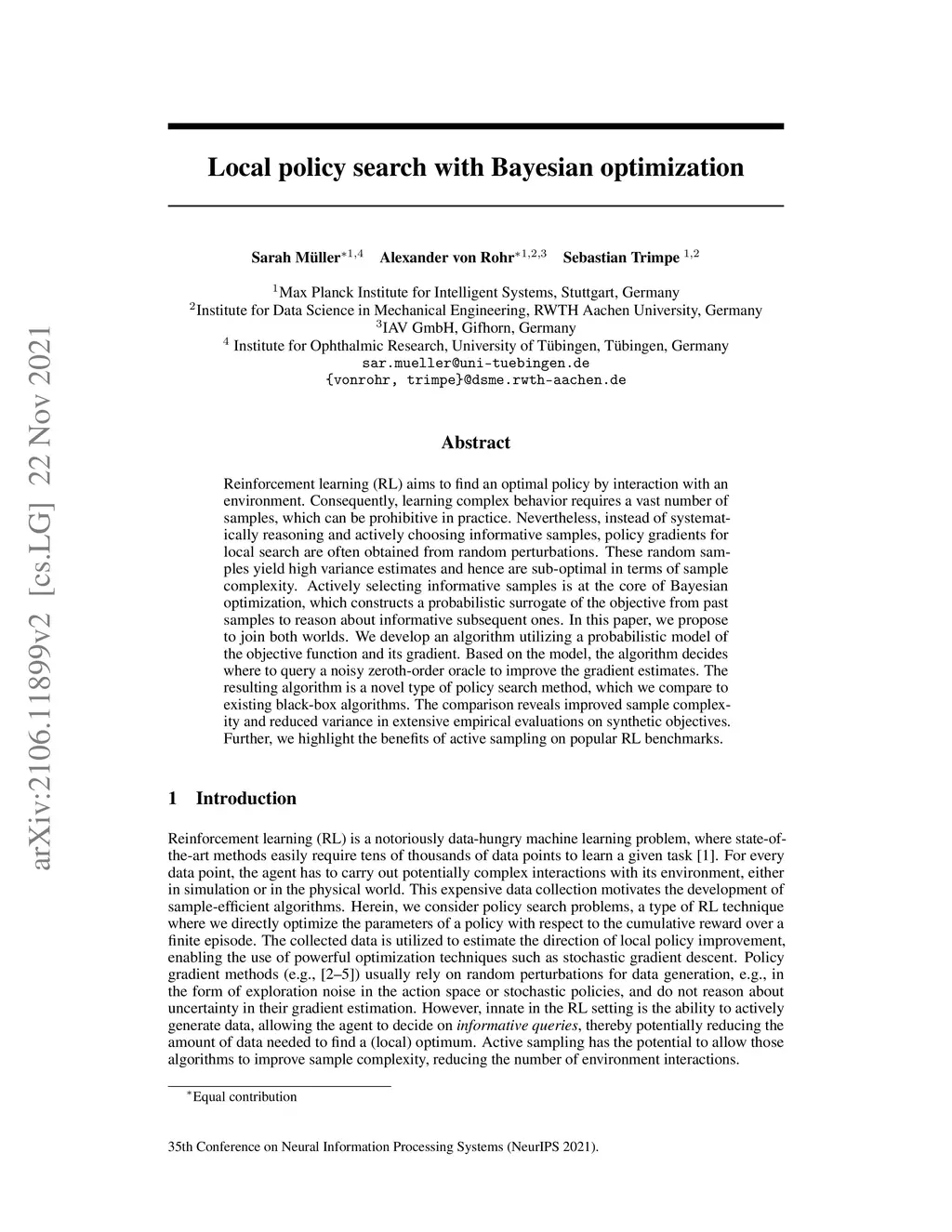 Local policy search with Bayesian optimization