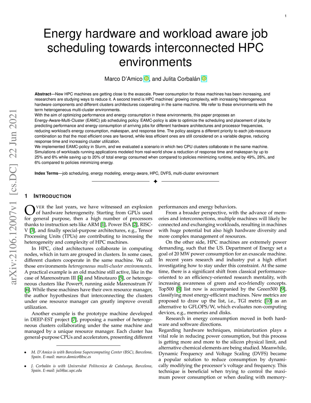 Energy hardware and workload aware job scheduling towards interconnected